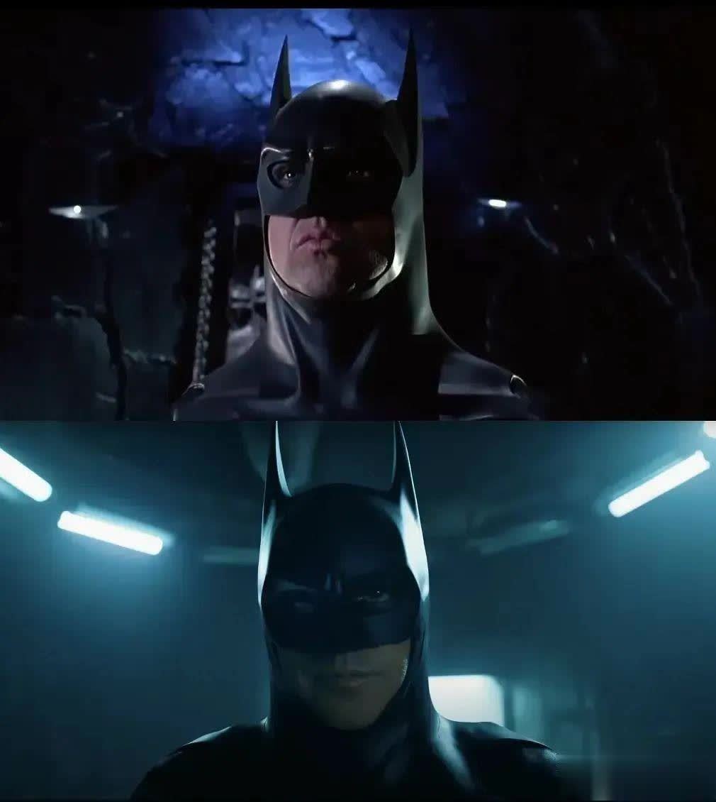 令人惊喜的是,第一代蝙蝠侠迈克尔·基顿在《闪电侠》(2023)里终极归来。时光荏苒,物是人非,基蝙以蓄须形象惊现时,我竟无法相认。而当他整理妆容重装上阵之时,如我般老影迷霎时热血沸腾。